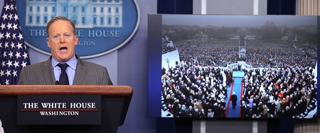 Thư ký báo chí của tân Tổng thống Donald Trump, ông Sean Spicer đã đến phòng họp báo Nhà Trắng lần đầu tiên vào ngày 21/1 để chỉ trích các tổ chức tin tức và tố rằng họ đưa tin sai về số lượng người tham dự lễ nhậm chức.