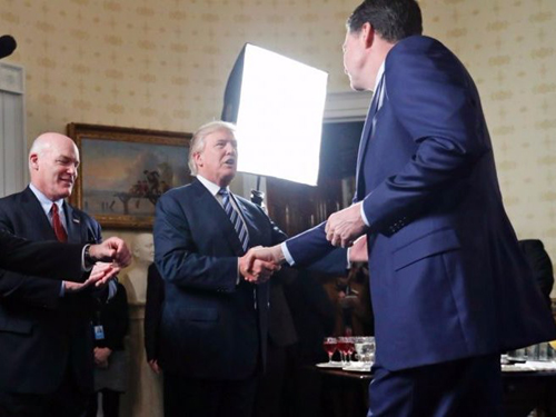 Theo B.I, ngày 22/1, ông Comey nhận một cái ôm và bắt tay từ tân Tổng thống của nước Mỹ Donald Trump. Tròn hai ngày trở thành tổng thống, tại buổi đón tiếp các quan chức của lực lượng thực thi pháp luật và an ninh ở Phòng Xanh Nước biển của Nhà Trắng, ông Trump có màn đón tiếp nồng ấm với ông Comey.