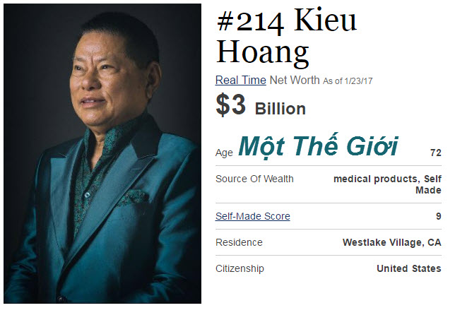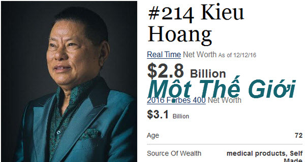 Ngày 12.12.2016, tỷ phú Hoàng Kiều chỉ có 2,8 tỉ USD.