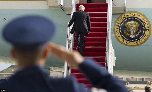 Trump sau đó nhanh chóng vào chiếc limousine chờ sẵn và tới địa điểm đã định. Khi được hỏi cảm nhận về chiếc Không lực Một, Trump nói đó là một máy bay tuyệt vời và rất đẹp. Ông nói rằng chiếc chuyên cơ của mình không đẹp bằng máy bay tổng thống.