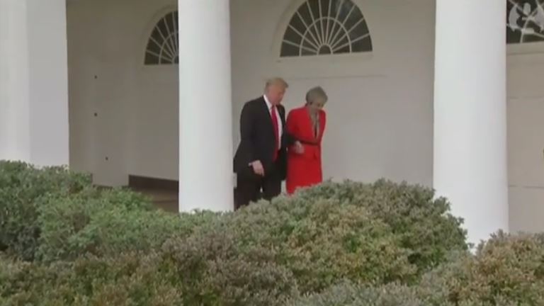 Hôm qua 27/1, tại Nhà Trắng đã có cuộc hội đàm và họp báo chung giữa Thủ tướng Anh với Tổng thống Mỹ Trump. Trên đường đi bộ trong Nhà Trắng, ông Trump đã sánh đôi cùng bà May và đã chủ động nắm tay bà.