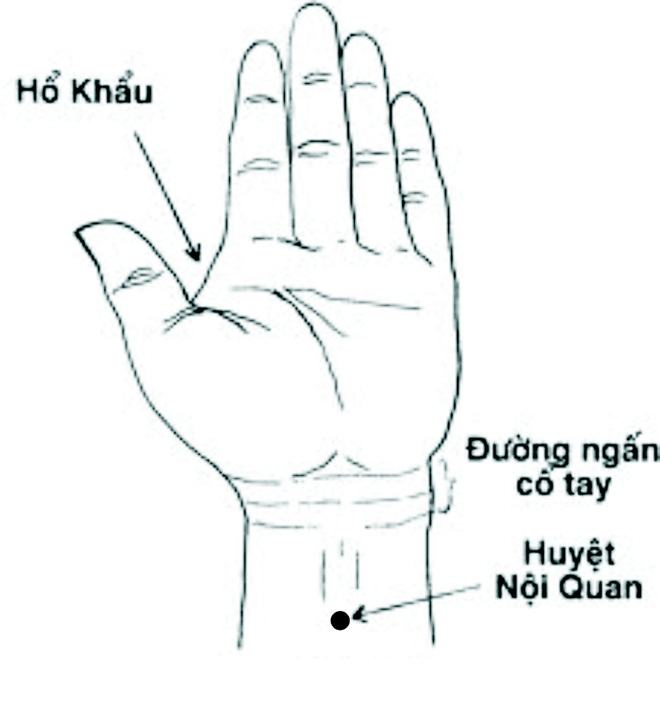 Vị trí của huyệt Nội Quan trên tay. (Tranh: nguồn Internet).
