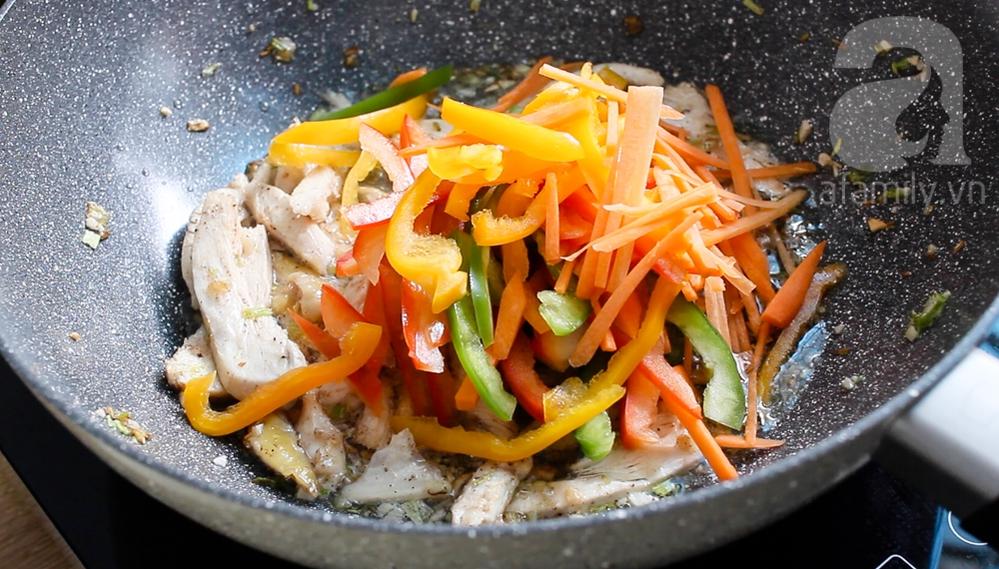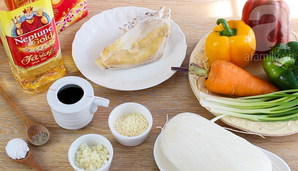 Ngày Tết nếu muốn tận dụng phần thịt gà đã luộc thì bạn hãy nhớ đến món miến xào ngũ sắc này. Sợi miến dai, rau củ ngọt thanh chắc chắn sẽ "khoác áo mới" cho món ăn nóng hổi này. Chỉ vài bước thực hiện đơn giản bạn đã có thể đổi vị cho cả nhà trong những ngày Tết nhiều thịt rồi.