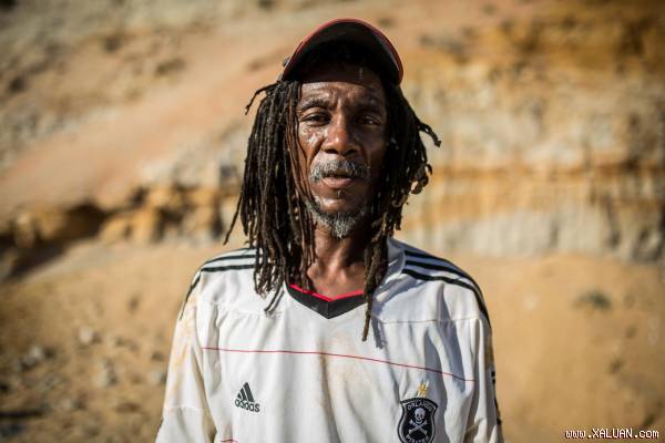 Người đàn ông trong ảnh tên Rasta, là một nhà địa lý chưa hề qua trường lớp nào. Trong 15 năm qua, ông đã tham gia đào hàng chục căn hầm để tìm kiếm kim cương. Tất cả công việc đều được làm bằng tay rất nguy hiểm, và đương nhiên là bất hợp pháp. Một căn hầm ông mở năm 2012 đã sập sau vài tháng, khiến 10 người chết.