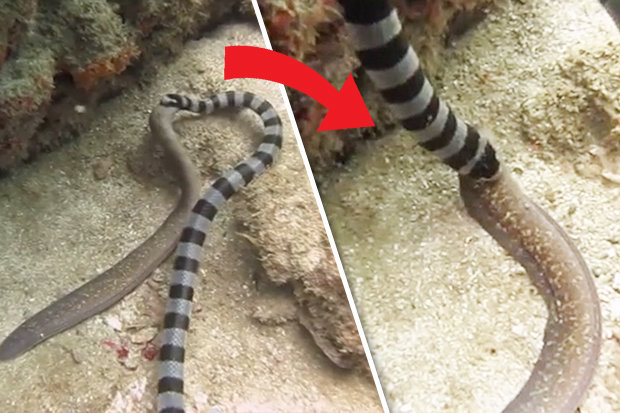 Chỉ trong vài giây, con rắn biển đã nuốt trọn cả con lươn. Đoạn video kết thúc với hình ảnh con rắn ẩn nấp tại một rạn san hô gần đó. Con rắn gần như không thể di chuyển sau bữa ăn lớn như vậy.