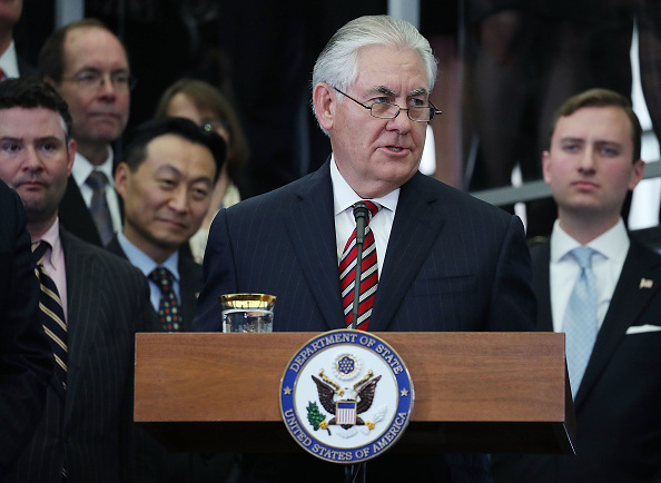 Ngoại Trưởng Rex Tillerson trong bài diễn văn chào các nhân viên tại Bộ Ngoại Giao khi ông đến nhậm chức vào ngày thứ Năm tuần qua. (Mark Wilson/ Getty Images)