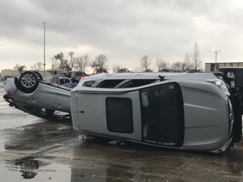 Lốc xoáy hất tung nhiều xe ô tô