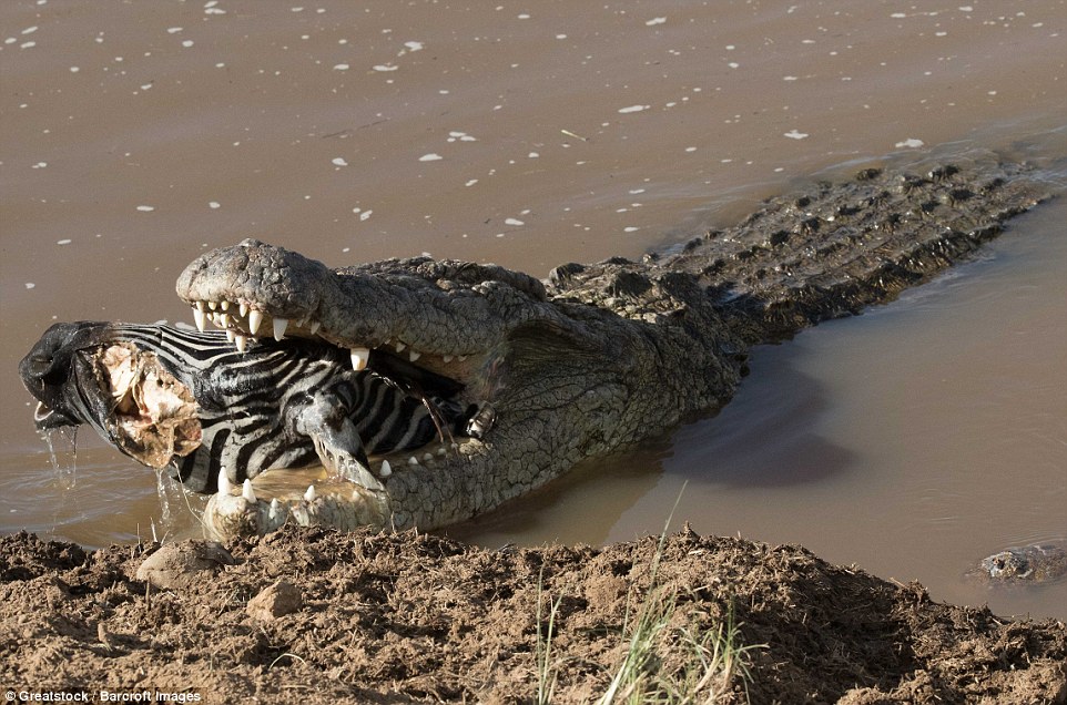 Những bức ảnh đáng kinh ngạc dưới đây cho thấy con cá sấu ăn tươi nuốt sống một con ngựa vằn.
