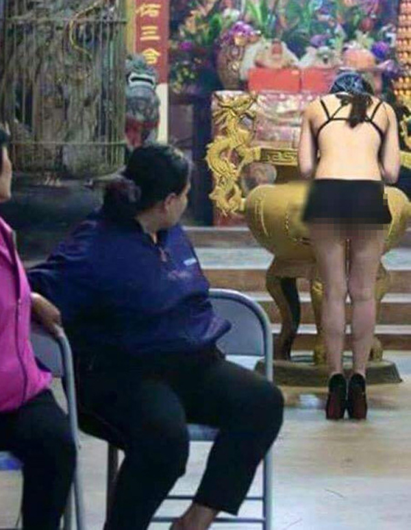 Old  Default Ngượng chín mặt nhìn thiếu nữ ăn mặc phản cảm đi chùa đầu năm