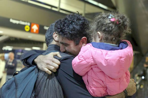 Công dân Iran có thẻ xanh của Mỹ vui mừng khi gặp lại gia đình ở Mỹ sau hơn 1 tuần bị bắt giữ để sàng lọc bổ sung theo sắc lệnh di trú của Tổng thống Donald Trump. Ảnh: Reuters