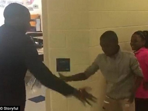 Thầy giáo dạy tiếng Anh Barry White Jr đă sáng tạo ra hàng loạt động tác bắt tay khác nhau dành riêng cho từng học sinh vào mỗi buổi sáng khi chúng vào lớp, tại trường tiểu học Ashley Park ở bang North Carolina, Mỹ.