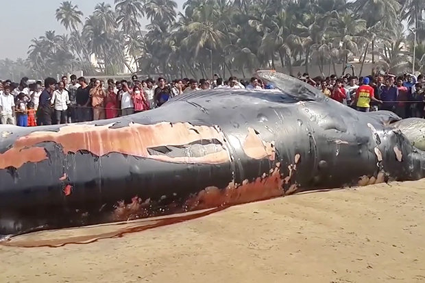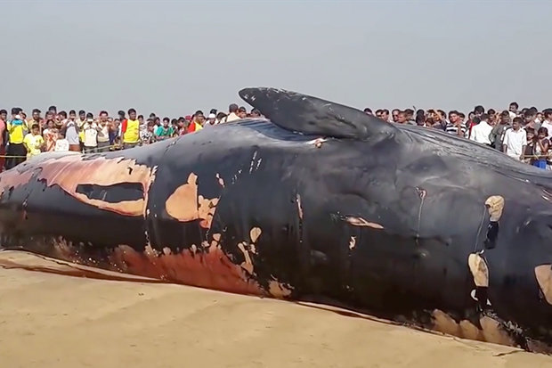 Xác cá voi khổng lồ trôi dạt bờ biển Ấn Độ.