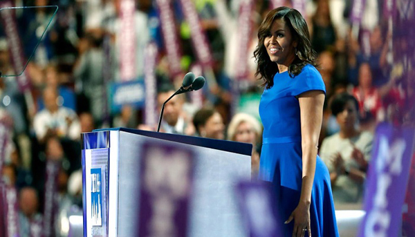 Cựu đệ nhất phu nhân Mỹ rất giỏi trong việc khuấy động đám đông. Bà từng có những bài phát biểu quan trọng các kỳ Đại hội của đảng Dân chủ vào năm 2008, 2012 và 2016. Trên thực tế, khả năng diễn thuyết của bà Michelle tốt tới mức vợ các chính trị gia khác bị cho là đã "mượn" vài đoạn trong các bài diễn văn của bà trong phần phát biểu của mình, trong đó có tân Đệ nhất phu nhân Melania Trump.
