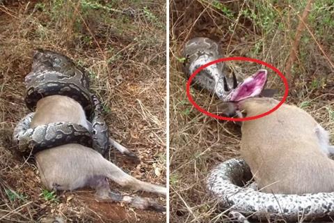 Mới đây, người ta ghi lại cảnh con trăn tham ăn cố nuốt trọn linh dương. Nhưng nó lại mắc sai lầm khi quá vội vã nuốt đầu linh dương trước khiến cổ họng của nó bị đâm phải sừng của con linh dương.