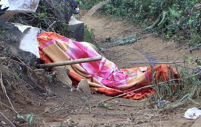 Thi thể một trong 3 nạn nhân vụ thảm sát tại hiện trường.