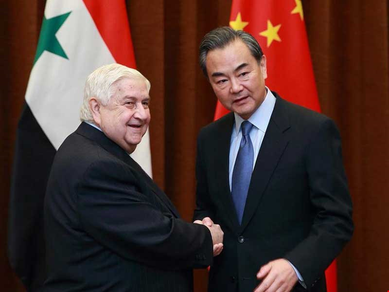 Thứ trưởng Bộ Ngoại giao Syria Walid al-Moallem (trái) gặp Bộ trưởng Ngoại giao Trung Quốc Vương Nghị tại Bắc Kinh năm 2015. Ảnh: TÂN HOA XÃ