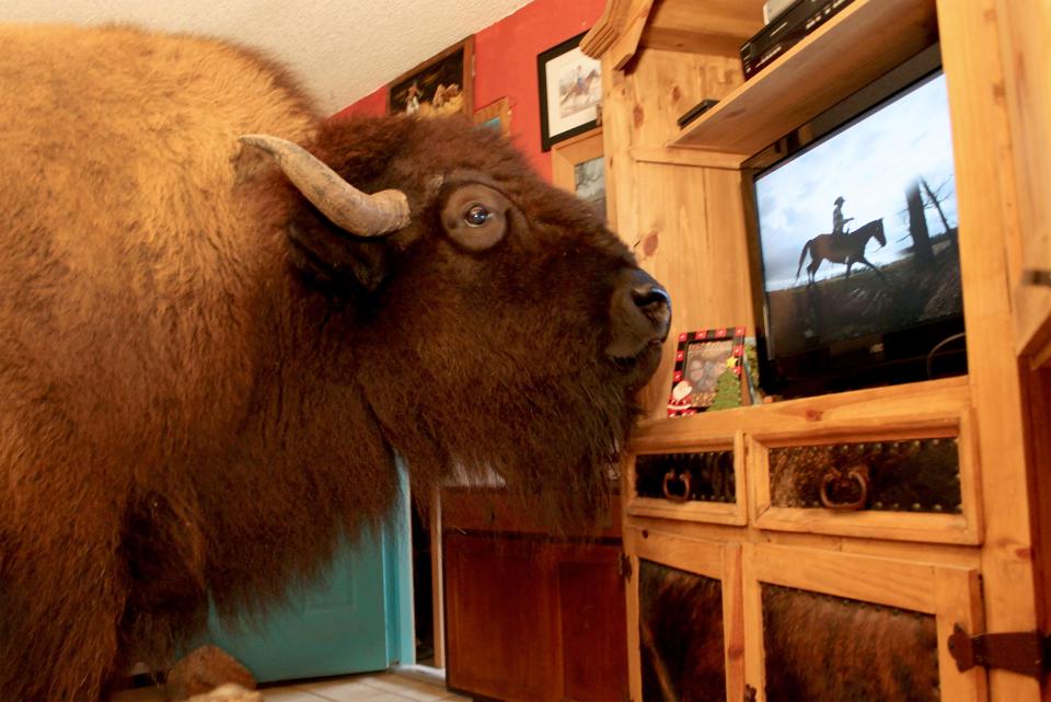 Ở Mỹ có một con trâu sướng không kém ǵ người. Nó có cả pḥng riêng và cũng có sở thích như ai đó là xem ti vi. Trâu khổng lồ 1 tấn này suưt giết chết chủ nhưng người chủ vẫn cưng chiều nó như vàng như bạc.