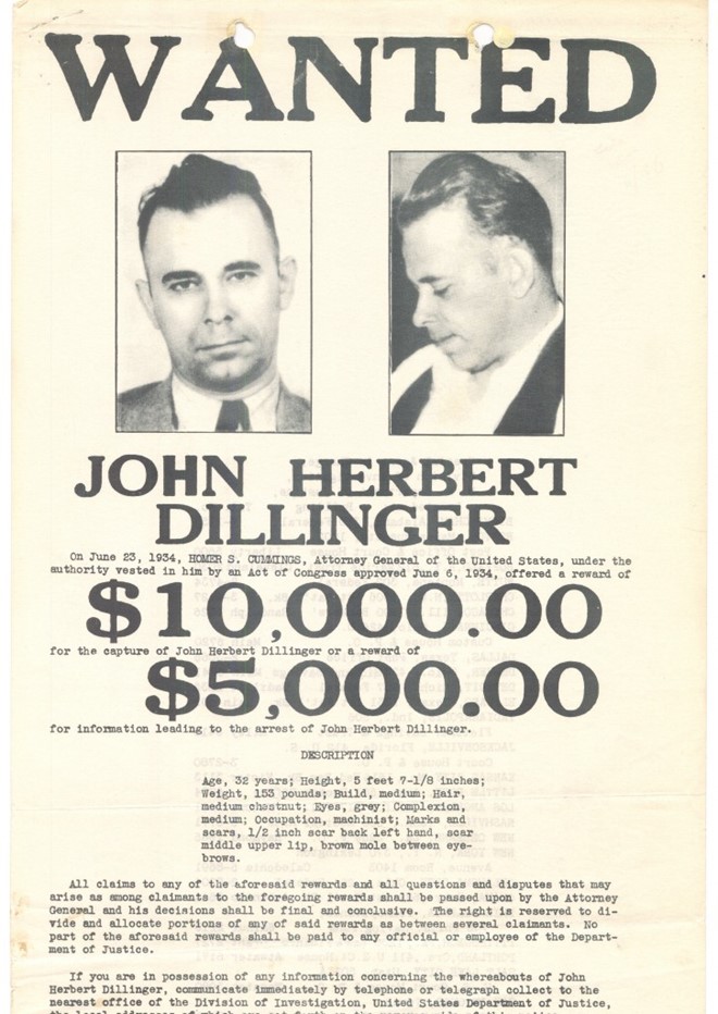 Ngày 15/1/1934 Dillinge bị cảnh sát vây bắt tại Indiana sau khi thực hiện phi vụ cướp Ngân hàng tại Đông Chicago. Đến ngày 3/3 Dillinger đã trốn thoát khỏi nhà tù ở Crown Point, nơi vốn được mệnh danh là "nhà tù chống vượt ngục" bằng một khẩu súng giả làm bằng gỗ.
