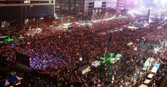 Sau vụ bê bối chính trị của Tổng thống Hàn Quốc Park Geun-Hye.Người dân Hàn Quốc nhiều lần tham gia biểu tình phản đối Tổng thống Hàn Quốc.Ngày 25/2 trước phiên luận tội của Tổng thống Hàn Quốc.Đông đảo người dân gồm cả hai phe ủng hộ và phản đối Tổng thống xuống đường biểu tình.