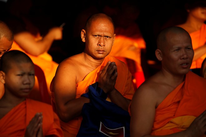 Các nhà sư của chùa Dhammakaya quyết tâm đối đầu cảnh sát và không giao nộp sư trụ trì. Ảnh: Reuters.