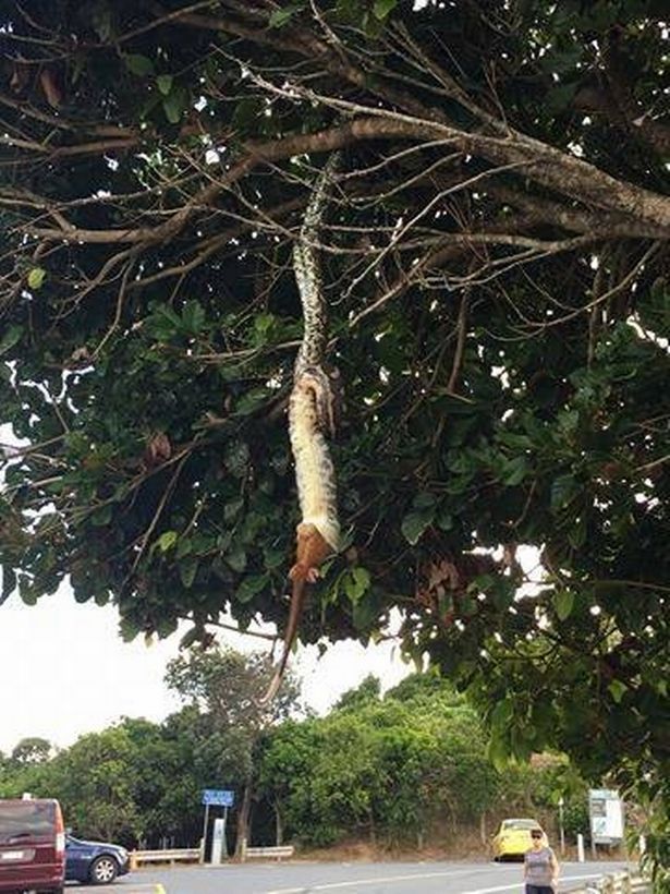 Trăn Carpet có chiều dài trung bình 1,5 mét và con vật treo trên cây này nhìn có vẻ như dài ít nhất tầm đó.