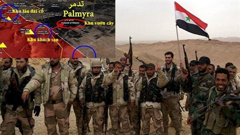 Với hỏa lực áp đảo, Quân đội Syria đã giành lại quyền kiểm soát khu vực lâu đài cổ Palmyra ở phía Tây Bắc và các dãy núi ở phía Tây Nam. “Và bây giờ chúng tôi đã sẵn sàng mở cuộc tấn công giải phóng thành phố" - nguồn tin của Quân đội Syria cho biết.