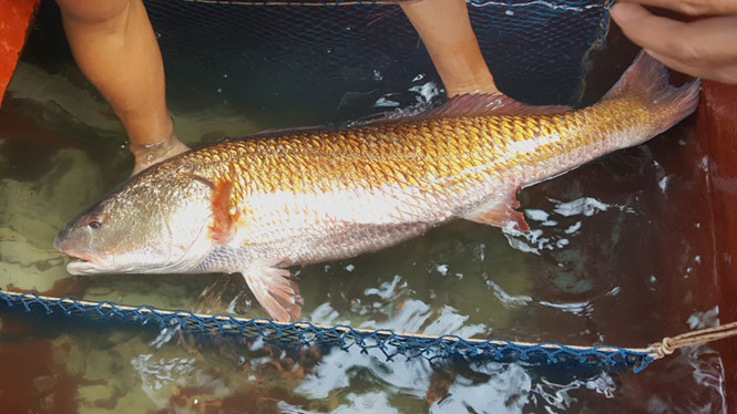 NGHỆ AN - Con cá có màu vàng óng, khá lớn, nghi là cá sủ vàng quý hiếm vừa được một ngư dân ở Nghệ An bắt được, thu hút sự quan tâm của nhiều người.