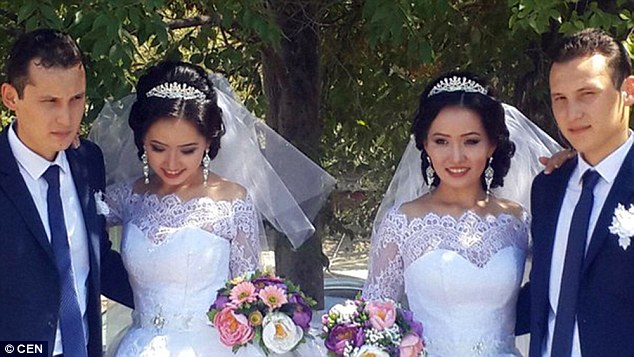 Torebek, 23 tuổi, chia sẻ: "Trong lễ cưới, tôi hoàn toàn bị rối trí, chúng tôi đều không thể nhận ra đâu là vợ của mình. Vì khi đó không những mặc váy cưới giống nhau mà trang điểm cũng y hệt nhau.