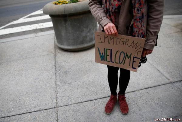 Các nhà hoạt động nhập cư phản đối sắc lệnh nhập cư mới của ông Trump ngày 7-3 bên ngoài Cục Hải quan và Biên phòng Mỹ