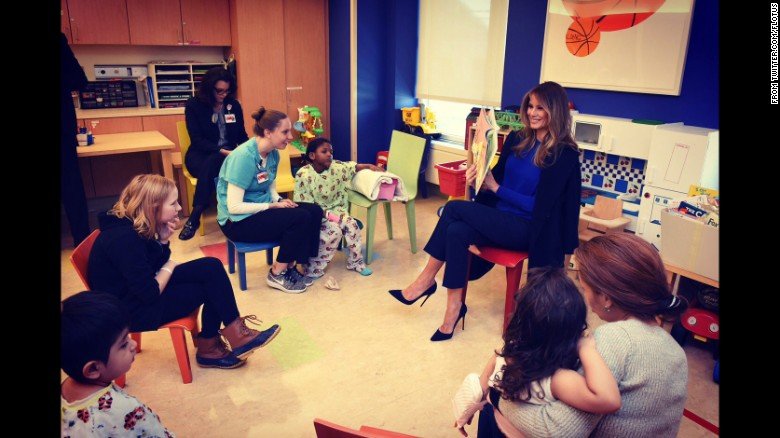 Bà Melania đọc sách cho trẻ em tại một bệnh viện ở New York trong một bức ảnh đăng trên twitter của bà ngày 2-3