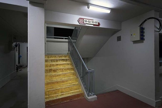 Priyageetha Dia, sinh viên Trường Nghệ thuật Lasalle, đã dát vàng các bậc cầu thang ở Jalan Rajah HDB cho dự án năm cuối của mình. Ảnh: Strait Times.