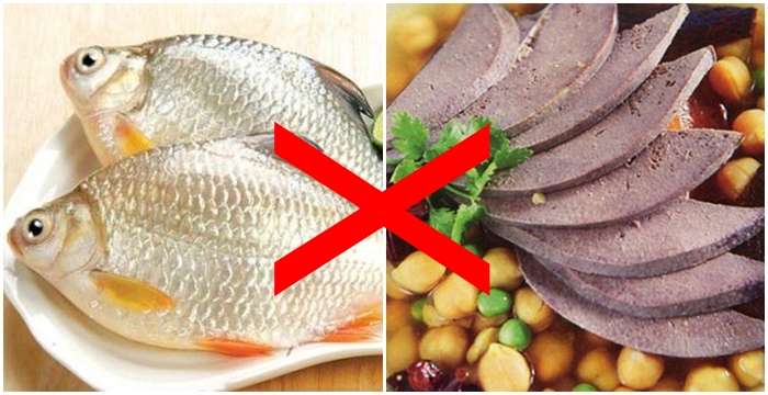 - Cá diếc tối kỵ gan heo: Nếu ăn chung hai loại thực phẩm này với nhau sẽ sinh độc.