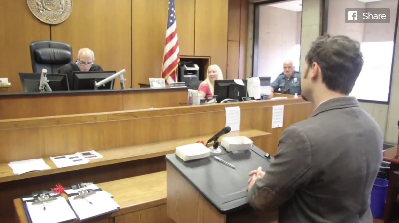 Thẩm phán tại tòa án thành phố Kansas đọc bản tố cáo về các tội danh của người đàn ông.Người đàn ông sau đó thừa nhận về tội danh của mình.Hành động sau đó của người đàn ông khiến "người bị hại" vỡ oà trong hạnh phúc.