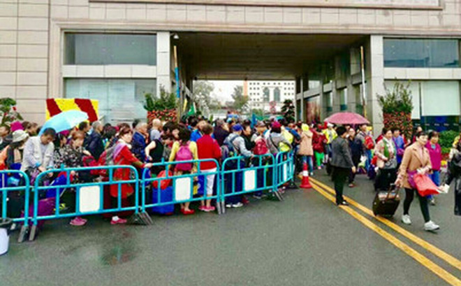 Du khách từ bên Trung Quốc đang chờ vào Việt Nam tại cửa khẩu Móng Cái, Quảng Ninh. (Lao Động)