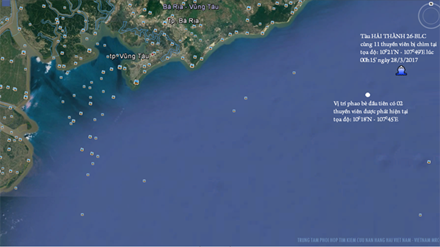 Sáng nay 28/3, vào hồi 4h37, Trung tâm phối hợp tìm kiếm cứu nạn Hàng hải Việt Nam nhận tín hiệu báo nạn từ phao EPIRB của tàu Hải Thành 26 tại vị trí 10018’N-107045’E trên vùng biển Vũng Tàu (cách Vũng Tàu khoảng 44 hải lý về phía đông). Chiếc tàu này đã bị đâm chìm, trên tàu có 11 người và chỉ có 2 người được cứu sống.