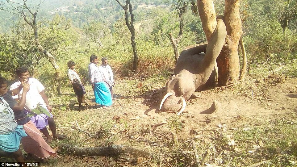 Theo Daily Mail, con voi đang muốn với lấy 1 quả mít chín ở cành trên cao thì bị mắc kẹt. Sự việc xảy ra ở dãy rừng Sholayar ở Ấn Độ. Con voi khổng lồ đã không thể rút chân ra và chết sau đó.