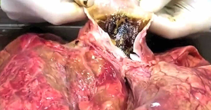 Mặc dù biết hút thuốc lá rất có hại cho sức khoẻ nhưng nhiều người vẫn hút.Theo thử nghiệm,một lá phổi sau khi hút 20 điếu thuốc lá và hình ảnh lá phổi sau đó thật kinh ngạc.Vậy không biết những người hút thuốc lá trong nhiều năm lá phổi hiện giờ đã chuyển sang màu gì?
