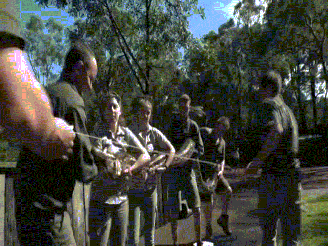 Vietbf.com - 5 người lớn vật vã bê con trăn lớn nhất Australia để đo và cân cũng gặp nhiều khó khăn do kích thước của nó quá lớn và da trơn nhẵn, vì con trăn khổng lồ này lớn quá nhanh như thổi với tốc độ hiện tại, thì nó sẽ sớm trở thành “quán quân” nước này.