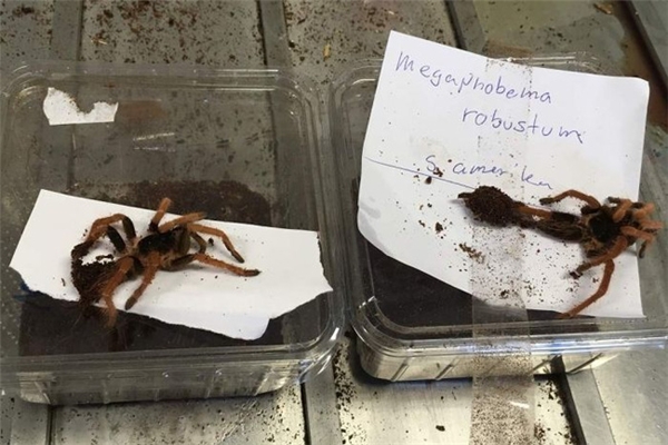 Khi mở gói hàng ra kiểm tra, lực lượng hải quan vô cùng sốc vì bên trong chứa tới 11 con rắn (bao gồm 6 con rắn lục nguồn gốc Đông Nam Á, 2 con rắn Hognose, 3 con trăn hoàng gia), 9 con nhện tarantula (bao gồm 2 con nhện tarantula ăn chim đến từ Brazil, 2 con nhện tarantula Colombia khổng lồ, 5 nhện tarantula Mexico) và 4 con bọ cạp rừng châu Á.
