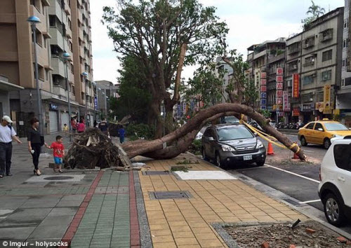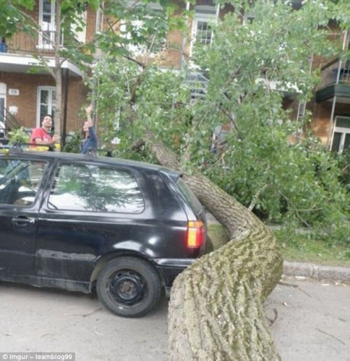 Thân cây cong giúp chiếc xe đỗ trên đường không bị hư hại gì.