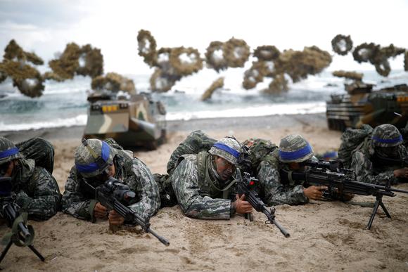 Lính Hàn Quốc tham gia tập trận "Đại bàng non" hôm 2-4. Ảnh: Reuters