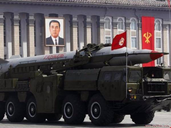 Tên lửa Triều Tiên trong một cuộc diễu binh ở Bình Nhưỡng vào ngày 15-4-2012 nhân kỷ niệm lần thứ 100 ngày sinh của cựu lãnh đạo Triều Tiên Kim Il-sung (Kim Nhật Thành). Ảnh: REUTERS