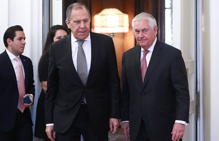 Ngoại trưởng Mỹ Rex Tillerson phải lên đường sang Nga trong khi căng thẳng Mỹ Nga đang dâng cao. Vẫn thấy sốc về vụ Mỹ dội tên lửa vào Syria, trước đó Putin không muốn tiếp ngoại trưởng Mỹ. Sau 5 giờ liên tục, cuộc hội đàm giữa Ngoại trưởng Nga Sergei Lavrov và Ngoại trưởng Mỹ Rex Tillerson tại Moscow đã kết thúc.