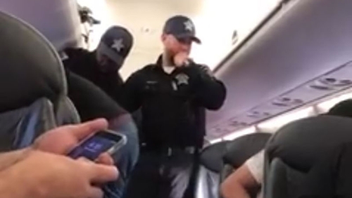 Các nhân viên an ninh cưỡng ép ông David Dao ra khỏi máy bay. Ảnh chụp màn hình: Facebook/Audra D. Bridges