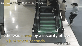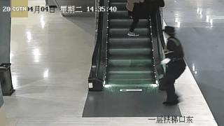 Đúng là một tai nạn thót tim liên quan đến thang cuốn ở Trung Quốc. Một cụ già bất ngờ vấp ngã khi đi thang cuốn. May mắn nhân viên an ninh và người phụ nữ đi cùng nhanh tay giúp đỡ.