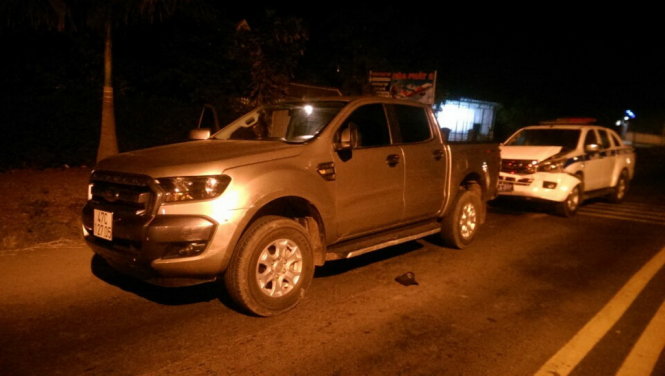 Trung tá Nguyễn Quang Vịnh - trưởng Phòng CSGT Công an Đắk Lắk - cho biết lúc 21h40 tối 16-4, tổ tuần tra thuộc phòng CSGT Công an Đắk Lắk đang làm nhiệm vụ tại quốc lộ 26, đoạn qua huyện M’Đrắk (Đắk Lắk) thì phát hiện ôtô bán tải chạy hướng M’Đrắk - Buôn Ma Thuột vi phạm lỗi đi không đúng phần đường.