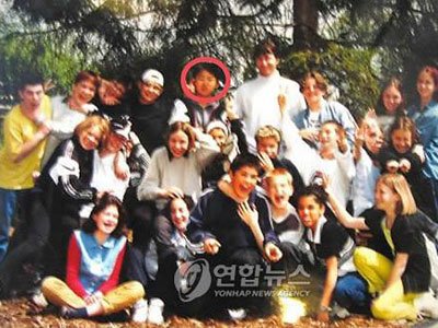 Ông Kim (khoanh tròn) chụp ảnh cùng các bạn cùng lớp ở Thụy Sỹ. Nguồn: Yonhap