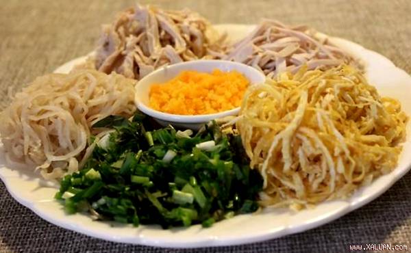 Yêu cầu từng nguyên liệu cũng nhiêu khê lắm. Bún phải là loại bún nhỏ, dai chứ bún sợi to bị coi là thô kệch. Thịt gà dẫu chẳng "kinh thiên động địa" gì nhưng phải xé bằng tay thật nhỏ và xốp chứ thái bằng dao là thịt bết như ở quán phở gà tầm thường. Riêng phần da thái bằng dao, tuy nhiên, phải nhỏ như sợi bún.