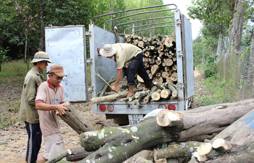Thu gom gỗ cao su nguyên liệu tại huyện Tân Phú, tỉnh Đồng Nai. Ảnh: T.H