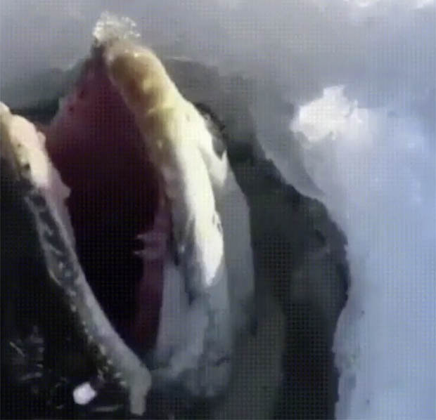 Ở một hố băng nhỏ, ngư dân phát hiện "thuỷ quái". Họ không giấu được sự choáng váng khi kéo cần câu ra. Ngư dân đào hố băng và "vớt" thuỷ quái ra khỏi đó.